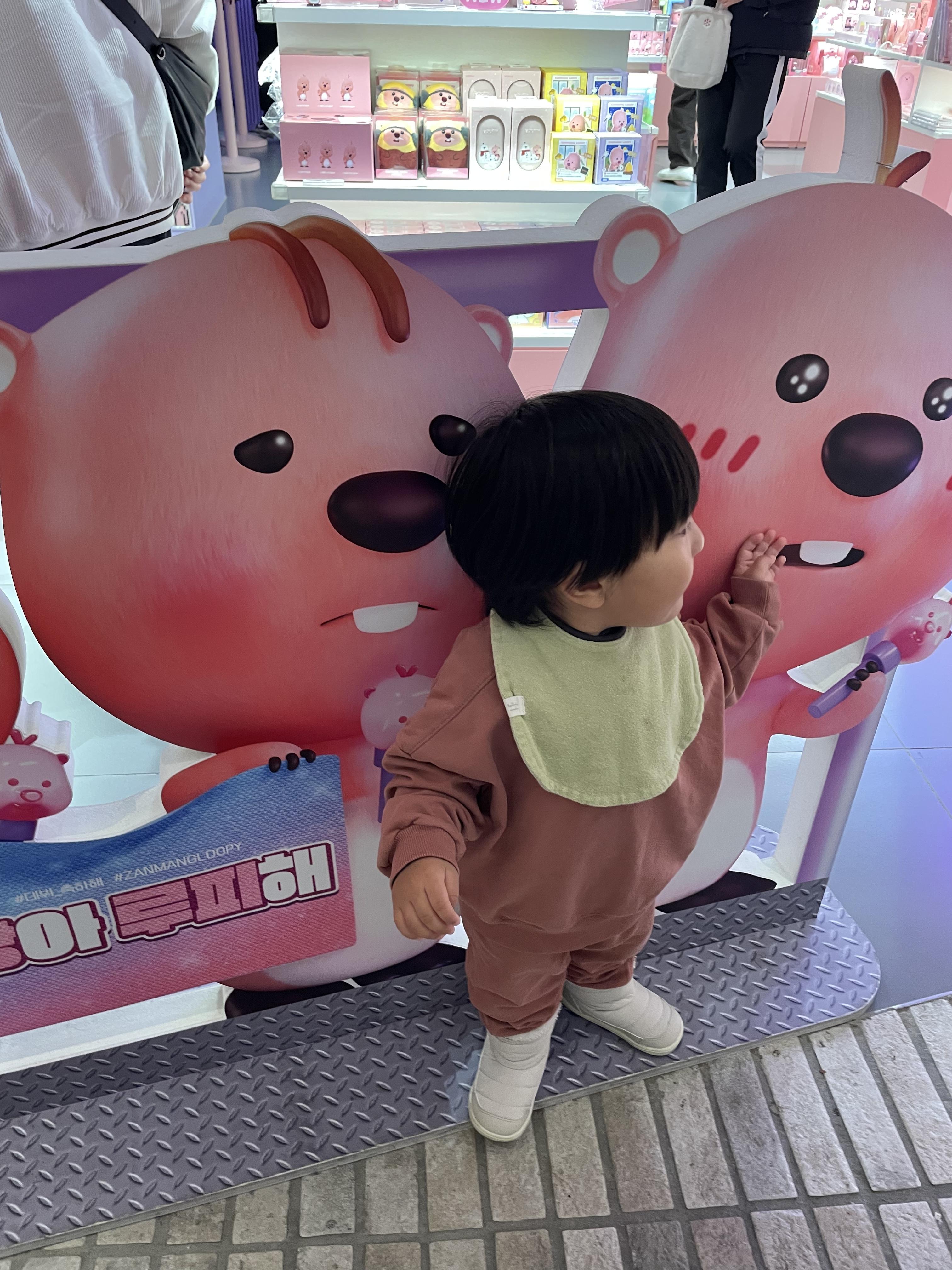 대기의 연속이었지만 더현대는 아이와 가볼 만한 곳이 많아서 좋습니다. 5층에 디즈니 스토어, 루피 스토어, 레고샵이 있습니다. 또 5층에는 아이들 옷가게도 많은데 베베드피노가 진열되어 있는 캐리마켓도 있어요.