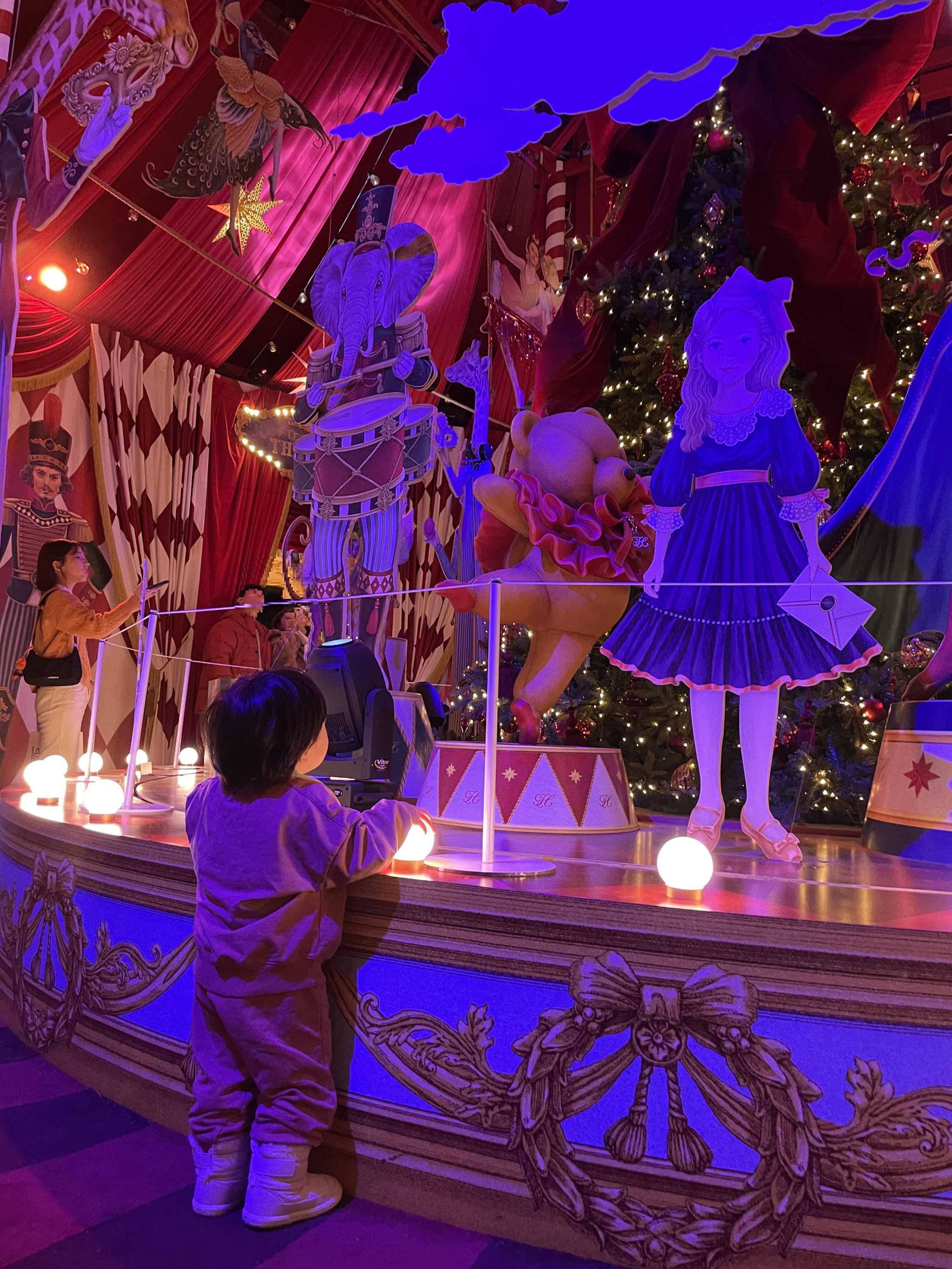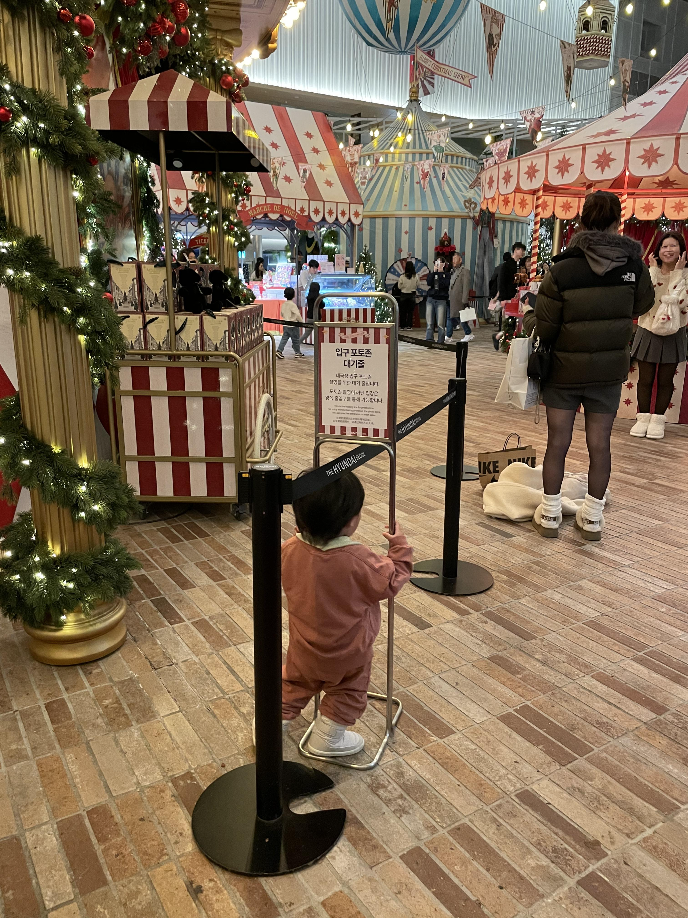 왜냐하면 8시 이후에는 입장하는 사람, 구경하는 사람이 확! 줄어들기 때문이죠. 더현대 자체는 오후 8시까지 영업하지만 크리스마스 전시랑 몇몇 식당들은 10시까지 운영한다고 합니다. 그래서 아기 낮잠시간도 있고(보통 12시부터 2시까지) 저녁 먹어야 되는 시간(늦어도 6시부터는 먹자!)도 애매해서 아예 식사 후에 방문하기로 했습니다.