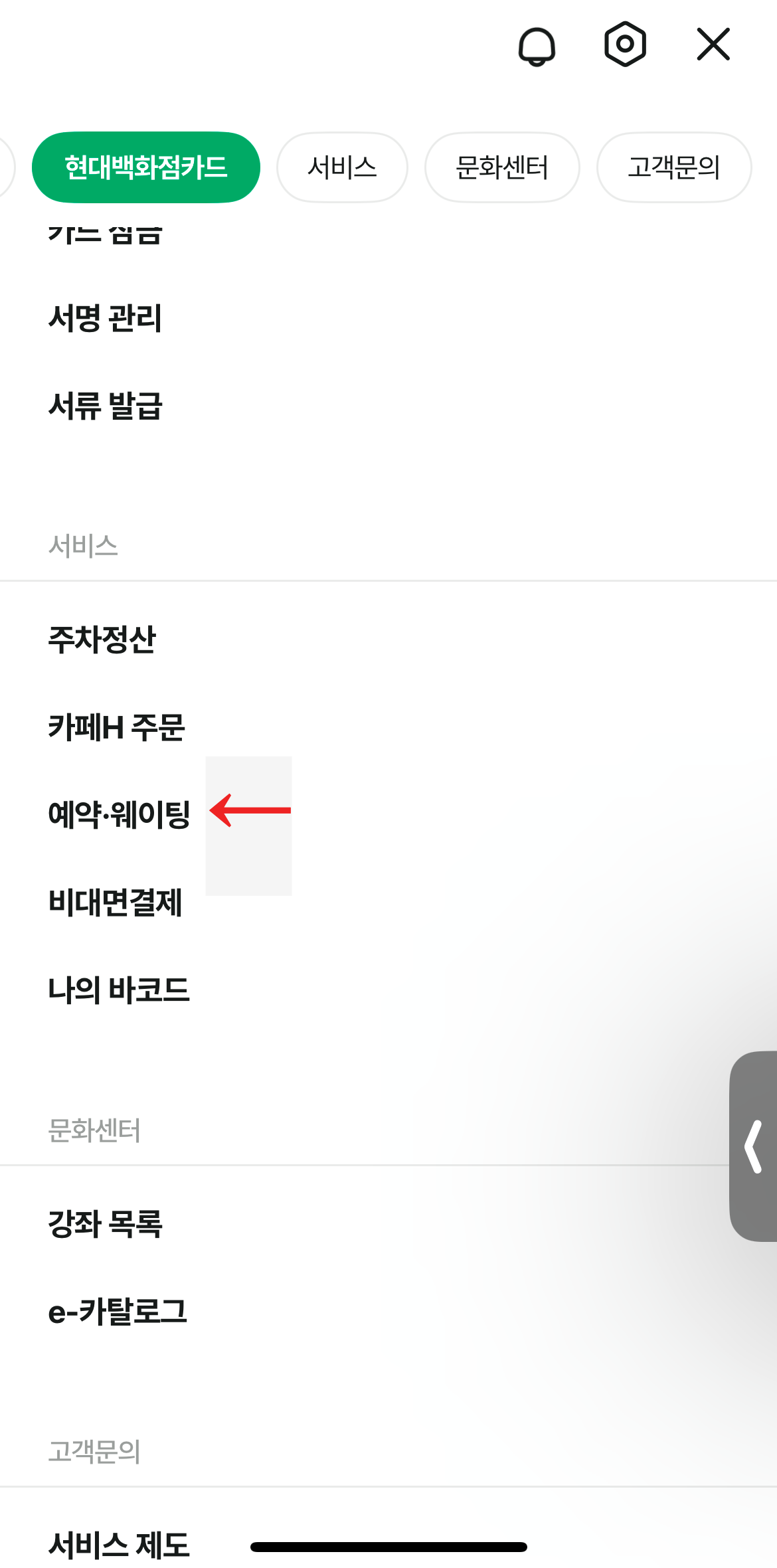 현대백화점 어플에서 로그인한 후에 왼쪽 실선 3개 클릭, 스크롤해서 내리다 보면 서비스> 예약웨이팅 클릭, 스크롤 내리다 보면 호우섬이 나옵니다.