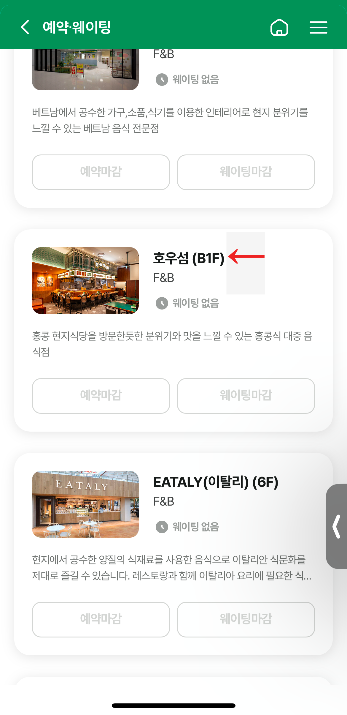 크리스마스 웨이팅이 끝나면 또 해야 하는 것이 식사 식당 웨이팅! 더현대에는 맛집이 진짜 많고 푸드코트도 잘 되어 있지만, 23개월 아이와 함께 하려면 조금이라도 일정을 확정해 두는 게 좋기 때문에 현대백화점 어플에서 예약할 수 있는 '호우섬'에서 저녁을 먹기로 했습니다.